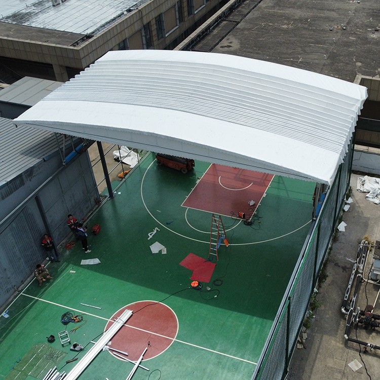 重慶籃球場(chǎng)架空電動(dòng)雨棚 懸空伸縮雨棚廠家安裝